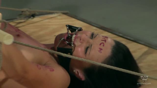 Casey Calvert hung upside down, skullfucked into oblivion by 2 cocks brutal relentless deepthroating