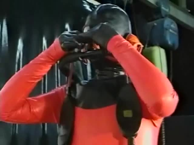 Footjob in rubber outfit