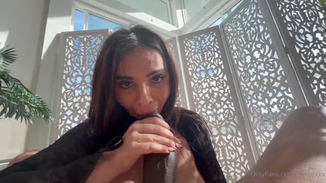 Porno superstar Jane Wilde teases poolside, modeling red stripper heels with a tight red-and-white polka-dot bikini. The petite-but-curvaceous cutie flaunts her luscious booty and talks dirty. She puts her head in stud Hollywood Cash's lap to suck his big Black cock. Jane worships his mammoth meat, spit soaking her gorgeous face. Sucking dick leaves her red lipstick crudely smeared over her cheeks. Jane gives director Jonni Darkko a turn, choking on his stiff shaft as Jonni roughly fucks her face. The guys team up, towering over Jane. An epic blowjob threesome includes raunchy ball lapping, harsh throat slamming and an epic cum facial. Jonni adds to the mess, squirting lube into Jane's mouth multiple times. Jane deepthroats Jonni's boner and later hangs her head off the side of the couch so the guys can ream her throat. They reward her, spewing gobs across her face. The jism drips from Jane's forehead to her chin. An instant replay recaps the climax.